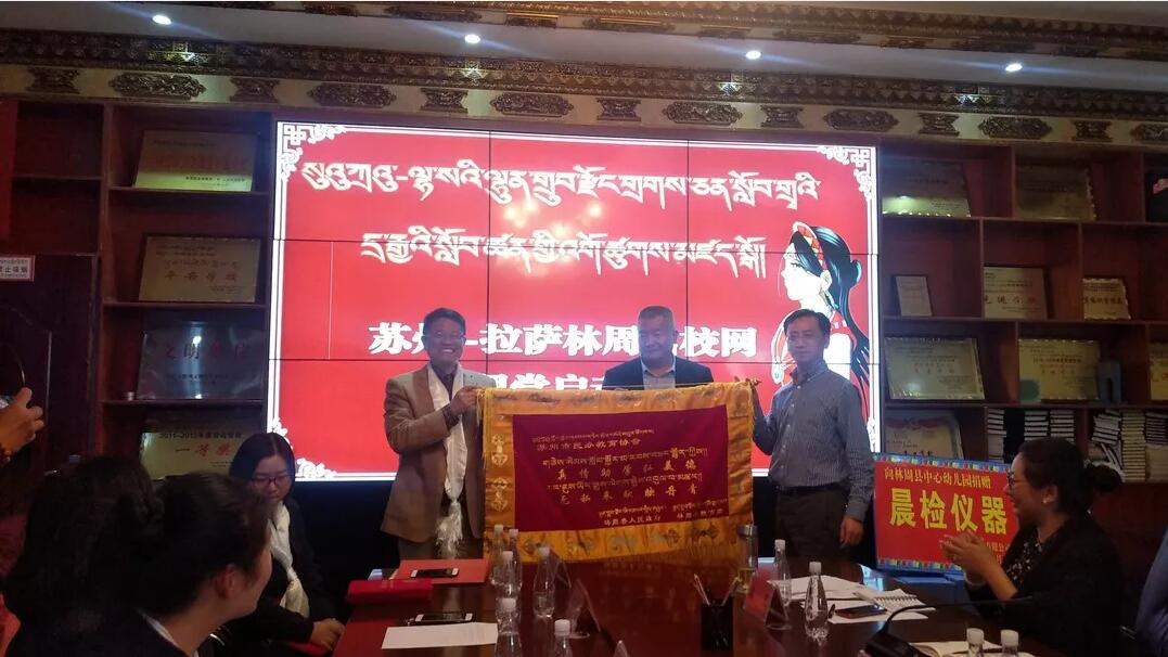 蘇州市民辦教育協會和蘇州市光彩事業促進會為當地的學校捐獻了網絡課堂的設備。