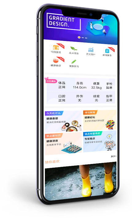• 由晨檢機(jī)器人檢查后發(fā)出的寶寶每天身體特征信息,查看寶寶成長(zhǎng)曲線